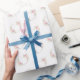El papel envuelto se muestra con flores rosas románticas y forma cardíaca impresa en un fondo blanco. Personalizar este artículo o compra tal cual. Imagen de stock freepik.com