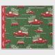 Navidades camioneros envolviendo papel con coches de época rojos sobre fondo verde natural con copos de nieve. Añade tu propio texto con la herramienta Zazzle fácil de usar! Visita la tienda para ver toda la colección.