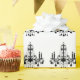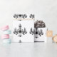 Luminosas lámparas de araña de cristal decoran este papel de envoltura en un clásico color blanco y negro, lo que lo convierte en el lugar perfecto para un boda o cualquier otra ocasión especial.