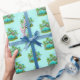 Este papel de envoltura se muestra con una tierna huella de dinosaurio. Color Aqua, Se Muestra Matte. Personalizar este artículo o compra tal cual. imagen de stock