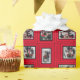 Elige 4 de tus mejores fotos familiares y haz tu propio papel de embalaje personalizado. Esta envoltura geométrica burdeos, rojas y negras de regalo complementará cualquiera de tus fotos.