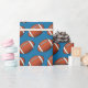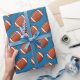 Papel de envolvimiento mostrado con una estampa de fútbol deportivo sobre un fondo de color azul. Personalizar este artículo o compra tal cual.