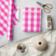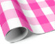 Papel de envolver diseñado con un patrón de gingham blanco y rosa caliente en grandes dimensiones.