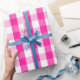 Regalo Papel de ajuste de Gingham blanco y rosa caliente