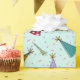 Se trata de un papel de envoltura alegre y colorido que presenta gorras fiestas, ruidosos y confetti sobre un fondo azul claro. Los gorras fiestas vienen con varios colores y patrones (rayas, puntos de polka y sólidos) con tostadores festivos. Los ruidosos dispersos y las vibrantes piezas de confeti le dan un toque festivo y caprichoso. Es un diseño alegre perfecto para una fiesta de cumpleaños o cualquier evento de celebración.