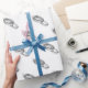 Bandas bodas con entrelazado elegante decoran este papel de envoltura de boda o ducha.