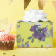 Hermosas flores de color morado sobre fondo amarillo claro