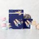 Las noches árabes envuelven papel con ilustraciones azules y dorados de lámparas, almohadas, zapatos, narices y flores sobre un fondo azul real. Puede cambiar el color de fondo.