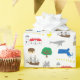 Con algunos de sus íconos favoritos de Massachusetts: Paul Revere, Chatham Lighthouse, Boston crema pie, mayflowers, The Mayflower, manzanos (Johnny Appleseed), ballenas jorobadas y patitos.