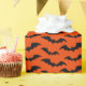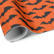 Papel de envolver de Halloween construido con un patrón de murciélago sobre un fondo naranja brillante. Personalizar el color de fondo naranja brillante entre otras opciones.