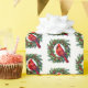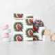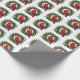 El papel de envolver de regalo de vacaciones se muestra en una corona de Navidades festivos con una huella de pájaro cardinal. Personalizar este artículo o compra como está. Imagen con licencia