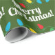 Un navidad festivo deformando papel con luces de Navidad y un patrón de escritura de Feliz Navidad. La escritura cursiva es audaz y por lo tanto llamativa.