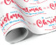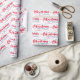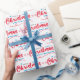 Este Navidad envuelve papel con un precioso diseño de caligrafía con las palabras "Ten una Feliz Navidad". También le permite añadir un mensaje personalizado o su nombre para que se imprima en el propio papel. Los colores predominantes son el rojo, el azul y el blanco.