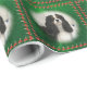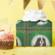 Esto son Navidades verdes, papel de envoltura que presenta una fotografía original de un Cavalier de tricolor rey Carlos esnaniel, rodeado de latas de dulces.