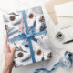 Navidades acuáticos envueltos de papel con ilustraciones de pinos, bayas y ramas de coníferas en colores azules, grises y marrones. Hermosos Navidades envolviendo papel para cualquiera, especialmente para los amantes de la naturaleza.
