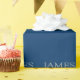 Este papel de envoltura incluye el nombre de James en letras plateadas que parecen estar elevadas.