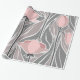 Un patrón floral con tulipanes rosa suave sobre un fondo gris mudo.