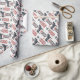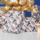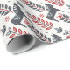 Festividad rústica rojo y polvoriento azul caballo de invierno nórdico patrón de envolver papel. El diseño rústico presenta caballos de estilo nórdico y flores en tonos rojos, azules y blancos.