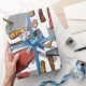 Patrón de camping con tienda, hacha, linterna, y más. Aliente a sus amigos y familiares a salir y encontrar aventuras mientras dan regalos.