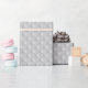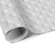 Patrón de copos de nieve repetitivos sobre papel de envoltura gris suave.