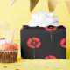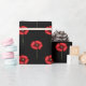 Pequeñas flores rojas de amapola sobre papel negro de envoltura para tus regalos en cualquier época del año.