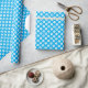 Este papel azul y blanco de envoltura es ideal para dar la bienvenida a un recién nacido del mundo, aunque con un diseño sencillo con puntas de polka, puede ser muy práctico para casi cualquier ocasión.
