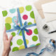 Los puntos de polka azules, rojos, amarillos y azules adornan todo este papel de envoltura de ocasión. Este divertido papel de envoltura es genial para un cumpleaños, ducha de bebé, graduación, Navidades, vacaciones, tema del circo, tema del carnaval, etc... El diseño es de arte original.