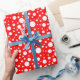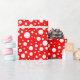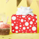 manchas blancas de diferentes tamaños sobre un fondo rojo.