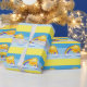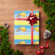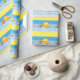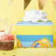 En este papel de envolver de regalo se muestra una bella imagen de un sol sonriente con un arco iris y nubes en el cielo. El diseño colorido sobre un fondo amarillo claro hace de esto una forma alegre de dar ese regalo especial.