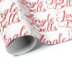 Papel de embalaje de vacaciones con texto rojo que dice Jingle Bells!