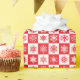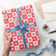 Este papel de regalo de vacaciones se muestra en un diseño festivo de impresión de copos de nieve rojos y blancos. Matte el Personalizar mostrado este artículo o compra como está. Imagen de stock freepik.com