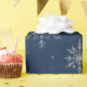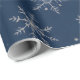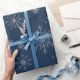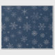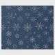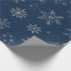 Elegante papel de envoltura azul marino con brillantes copos de nieve dorados para sofisticados regalos vacacionales.