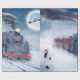Navidades entrenan papel de envoltura, con santa y trineo y renos pasando la luna llena, delicias de niñitas