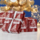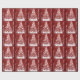 Personalizado con el nombre de su familia Papel envuelto de árbol de Navidad rojo y blanco elegante
