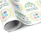 El papel de envoltura de vacaciones muestra un árbol de Navidad verde festivo decorado con brillantes adornos, junto con un campo de texto de personalizable para tu mensaje de vacaciones, nombre de negocio o logotipo/foto. Su diseño elegante y minimalista lo hace ideal para añadir tu logo corporativo, nombre o saludo personal, creando un envolvimiento de regalo refinado y clásico que difunde alegría navideña. © Wafa Y. Dahdal - Reservados todos los derechos. Arte de WD