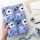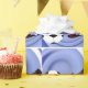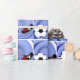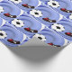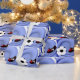 ¡En el campo de fútbol con la pelota de fútbol y un jugador listo para la patada ganadora! El fondo de remolino azul hace que la pelota y el zapato se vuelvan pop. A los aficionados al deporte les encantará ver sus regalos envueltos en este diseño fresco.