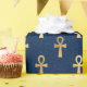 El elegante papel de envoltura presenta el patrón de los antiguos símbolos egipcios de toba en un fondo azul oscuro. El tobillo también es conocido como la clave de la vida