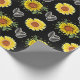 Regalo Papel de ajuste del patrón de girasol, fondo negro