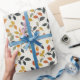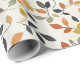 Papel envuelto con un patrón encantador de hojas de otoño en tonos cálidos de naranja, amarillo y verde oscuro sobre un fondo claro. Ideal para regalos con tema de otoño y celebraciones de temporada.