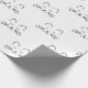 El gato se enfrenta a un patrón en el fondo blanco. Papel de envoltura de colores blanco y negro.