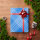 Regalo Papel de ajuste en blanco y azul de Gingham