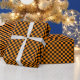 Papel de envolvimiento diseñado con un patrón a cuadros negros y naranjas en tamaño mediano. Personalizar el color naranja de una manera fácil.