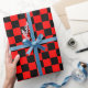 Papel de envolver diseñado con un patrón de cuadros negros y rojos de gran tamaño. Puedes cambiar el rojo por otro color.