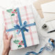 Tenían diseños lindos como este gingham, comúnmente en los años 50. Nos gusta el aspecto de hoy, y espero que tú también lo hagas. Esta es una versión rosa y verde claro y aireado de esos patrones retro. El hueco rojo y verde anuncia la temporada de invierno. Un papel de envoltura tan atractivo para sus Navidades que envuelven proyectos de papel.
