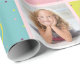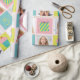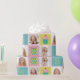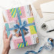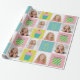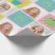 Papel de envoltura de personalizable con hasta tres fotos y edad de cumpleaños. El quequito, de color rosa, azul, amarillo y morado, presenta ilustraciones y puntos de polka.