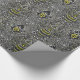 el papel de regalo imprimió con un modelo afiligranado delicado y complejo de la abeja. Abejas rodeadas por remolinos y puntos en amarillo y blanco contra negro y gris.