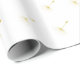 Las semillas amarillas flotantes del diente de león en un fondo blanco adornan este papel de embalaje de la primavera, haciendo lo perfecto para un cumpleaños, el boda, el aniversario o cualquier ocasión especial apropiados para hacer un deseo.