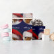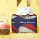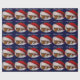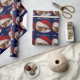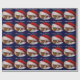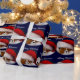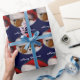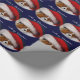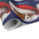 Éste es un rollo del azul, el papel de embalaje del navidad que ofrece encantar, fotografía original de un perrito arrogante del perro de aguas de rey Charles del blenheim, durmiendo con un gorra de Santa encendido.