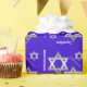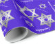 Palo del azul real o papel de embalaje bonito de Mitzvah de la barra, con los gráficos de las estrellas del tono plateado de David y de la enhorabuena blanca de la lectura del texto. Personalice el texto para leer lo que usted prefiere.