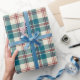 Un rollo de Giftwrap elegante, con Borgoña roja, beige y los azules marinos Madras comprueba el modelo. Parte de la colección elegante y Painterly de "Heffalumps".